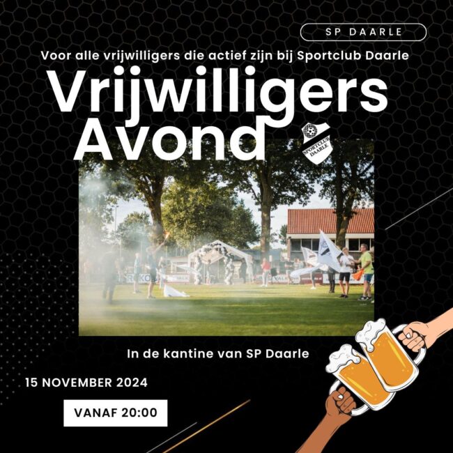 15 november 2024 zijn alle vrijwilligers die actief zijn bij Sportclub Daarle uitgenodigd voor de vrijwilligersavond. De avond begint om 20:00 uur in de kantine van de voetbalvereniging.