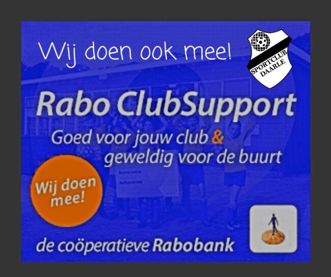 Stem op Sportclub Daarle en steun de vereniging! Hoe meer stemmen, hoe meer geld in de kas van de voetbalvereniging. De Rabobank verdeelt een geldbedrag onder de verenigingen, op basis van het aantal stemmen. Stemmen kan in de Rabo App of op rabobank.nl/clubsupport. Stemmen kan van 5 oktober t/m 25 oktober 2021. Doe nu mee!